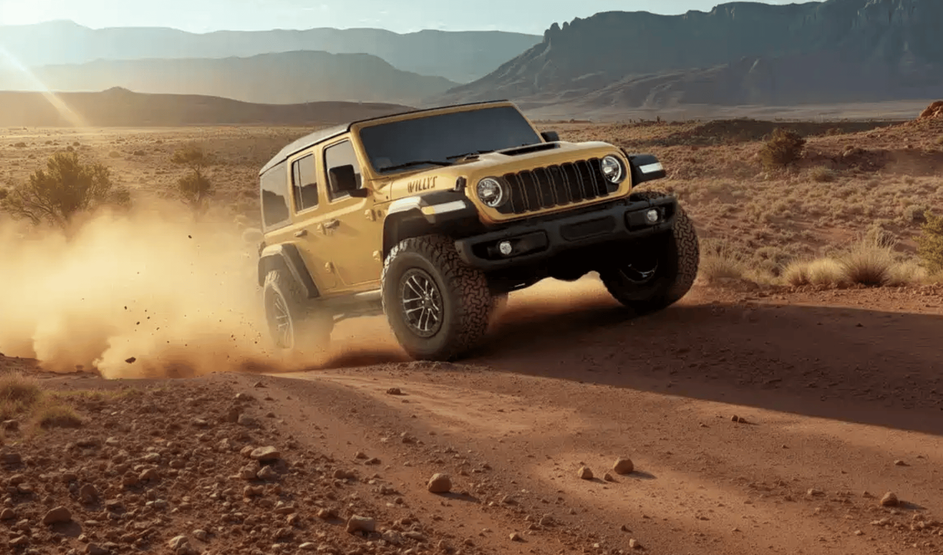 凭借着经典的方盒子车身,超高的辨识度,出色的通过性和越野性能,成为了那个时代家喻户晓的车型,也让消费者看到了除了轿车外,汽车的另一种表现方式。刚下战场,转向家用车市场后,并不是一帆风顺,从Jeep CJ2A、CJ3A、CJ3B,知道CJ5才真正进入到了千家万户。被克莱斯勒收购之后,YJ系列正式更名为牧马人,再到最后的TJ系列,分出了牧马人Rubicon和Sahara。今天带来了的Jeep牧马人Willys 392车型的官图,它外观更加狂野,动力更加强劲,越野性能也更加出色。美式经典越野车,HEMI V8发动机+35英寸越野轮胎,还有后桥差速器。